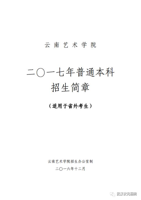 云南艺术学院2017年普通本科招生简章(适用于省外考生) 2016-12-27